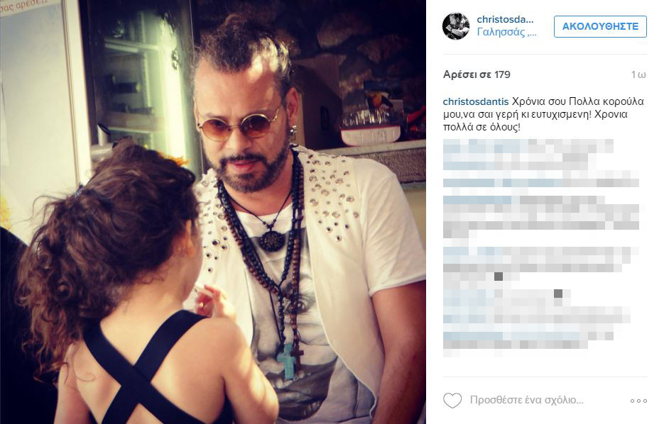 Τη γιορτή της έχει σήμερα η κορούλα του Χρήστου Δάντη και ο τραγουδιστής έσπευσε μέσα από τον προσωπικό του λογαριασμό στο Instagram να της ευχηθεί ανεβάζοντας μια τρυφερή φωτογραφία και σχολιάζοντάς: