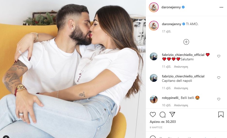 Η σύζυγος του αρχηγού της Νάπολι, Lorenzo Insigne, είναι μια από τις πιο γνωστές WAGs. Η 28χρονη Jenny, γνώρισε όταν ήταν μικρή τον ποδοσφαιριστή και ξεκίνησαν νωρίς την κοινή τους πορεία. Επτά μήνες μετά το πρώτο τους ραντεβού της έκανε πρόταση γάμου. Ο γάμος ήταν… υπερπαραγωγή και έγινε το 2012. Το ζευγάρι έχει αποκτήσει δύο γιους.