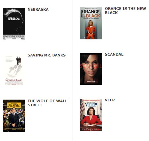 Επίσης επιλέχτηκαν οι σειρές: «The Americans», «Breaking Bad», «Game of Thrones», «The Good Wife», «Mad Men», «Masters of Sex» και το «Scandal and Veep».