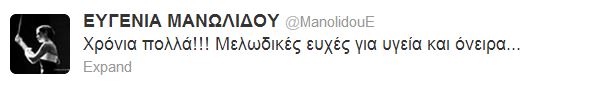 Η Ευγενία Μανωλίδου γράφει «χρόνια πολλά» και στέλνει μελωδικές ευχές μέσω twitter.
