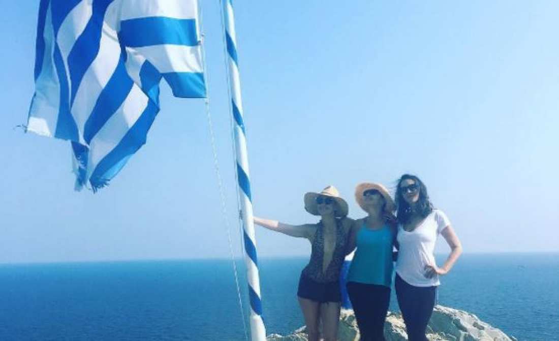 Η ηθοποιός έρχεται κάθε χρόνο στη Σκιάθο, ενώ αυτή την φορά φωτογραφήθηκε και με την Ελληνική σημαία.