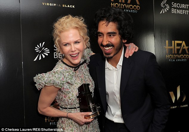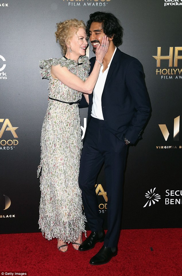Η Αυστραλή ηθοποιός, που κέρδισε το βραβείο β’ γυναικείου ρόλου για την δραματική ταινία «Lion», ήταν ιδιαίτερα εκδηλωτική απέναντι στον συμπρωταγωνιστή της αγκαλιάζοντάς τον συνέχεια. Στην ταινία αυτή, μάλιστα η Κίντμαν υποδύεται τη μητέρα ο Πάτελ τον γιο της.