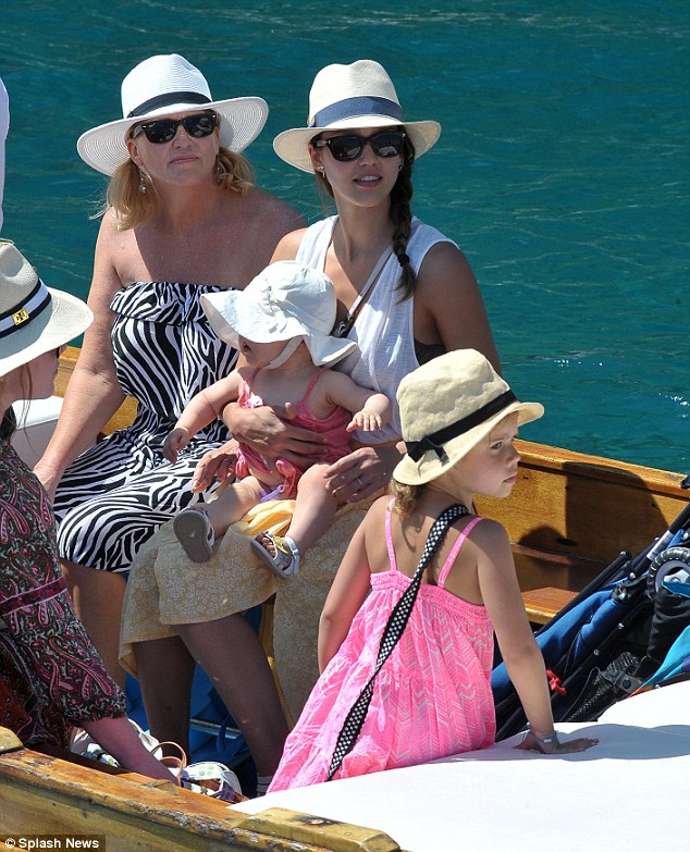 Οι τρεις τους, φορώντας καπέλα για τον ήλιο, απόλαυσαν μία βόλτα με βάρκα και η Jessica Alba κρατούσε στην αγκαλιά της την μικρή της κόρη.