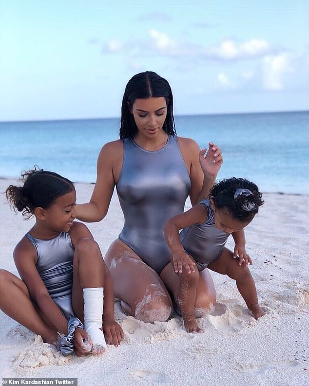 Η τηλεπερσόνα έντυσε τις κόρες της Νορθ και Σικάγο με το ίδιο ολόσωμο μαγιό με το δικό της ενώ δίπλα της είχε και τους δυο γιους της, τον Σεντ και τον νεογέννητο Ψαλμ. Η ίδια έγραψε στις λεζάντες των φωτογραφιών που ανήρτησε στο instagram ότι η φωτογράφιση με τέσσερα παιδιά είναι αδύνατη.