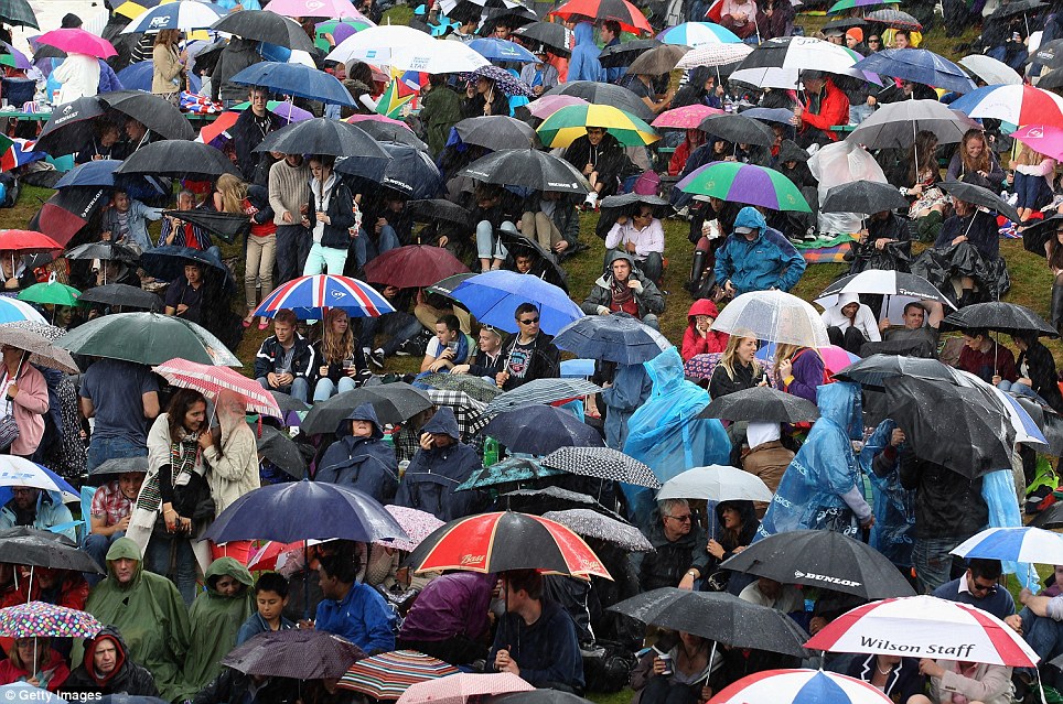 Αυτοί είναι οι τυχεροί που βρέθηκαν στις κερκίδες. Γιατί οι υπόλοιποι, παρακολουθούν από γιγάντιες οθόνες, τον αγώνα! Τι κι αν βρέχει; Αυτό δεν τους πτοεί…