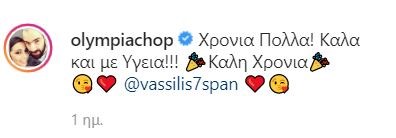 Καλή χρονιά στους followers της ευχήθηκε η σύζυγος του Βασίλη Σπανούλη, Ολυμπία Χοψονίδου.