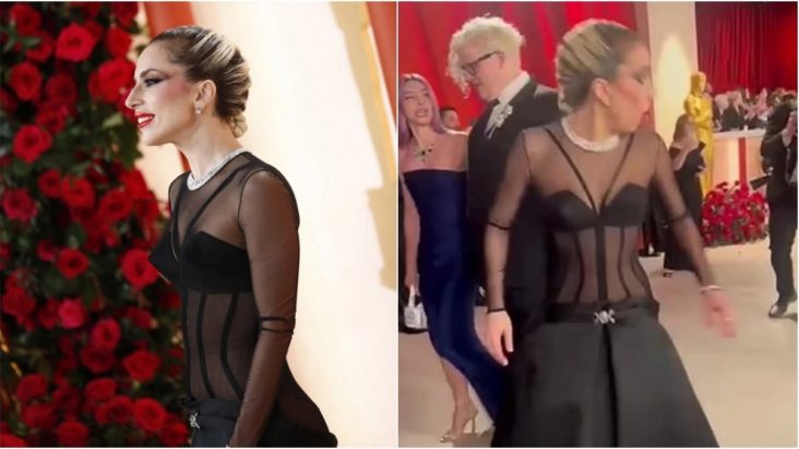 Ένας φωτογράφος προσπάθησε να τραβήξει από κοντά το εντυπωσιακό φόρεμα της Lady Gaga για τη φετινή απονομή.