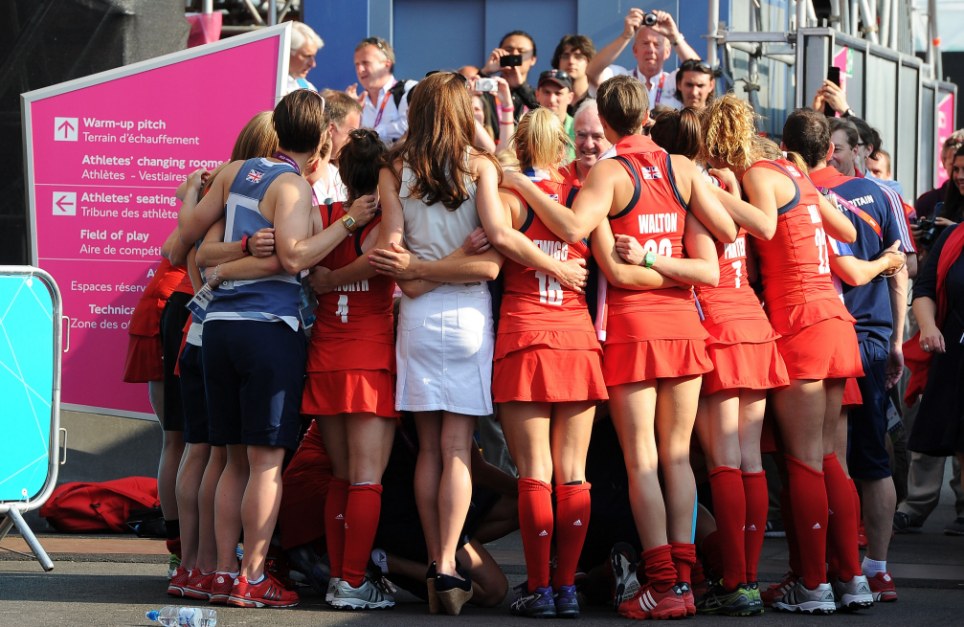 Δείτε τους έξαλλους, για πριγκίπισσα, πανηγυρισμούς μετά τη νίκη της γυναικείας ομάδας Χόκεϊ με 3-1 επί της Νέας Ζηλανδίας.Η Κέιτ Μίντλεντον είναι μεγάλη θαυμάστρια του συγκεκριμένου αθλήματος καθώς μικρή άνηκε σε ομάδα.