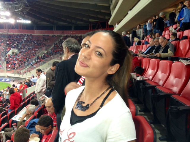 Κάθε φορά που εμφανίζεται στην TV μας καθηλώνει με το απίστευτο κορμί της και την ευλυγισία του! Η σέξι TV persona έκανε όλα τα αντρικά βλέμματα στο γήπεδο “Γ. Καραϊσκάκης” να … καρφωθούν πάνω σε αυτήν, αλλά και τη φίλη της!