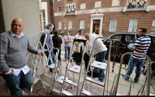 Δημοσιογράφοι, τεχνικοί και φωτογράφοι, έχουν ήδη στήσει για να απαθανατίσουν την ιστορική στιγμή, που το πριγκιπικό μωρό θα κάνει την εμφάνισή του.