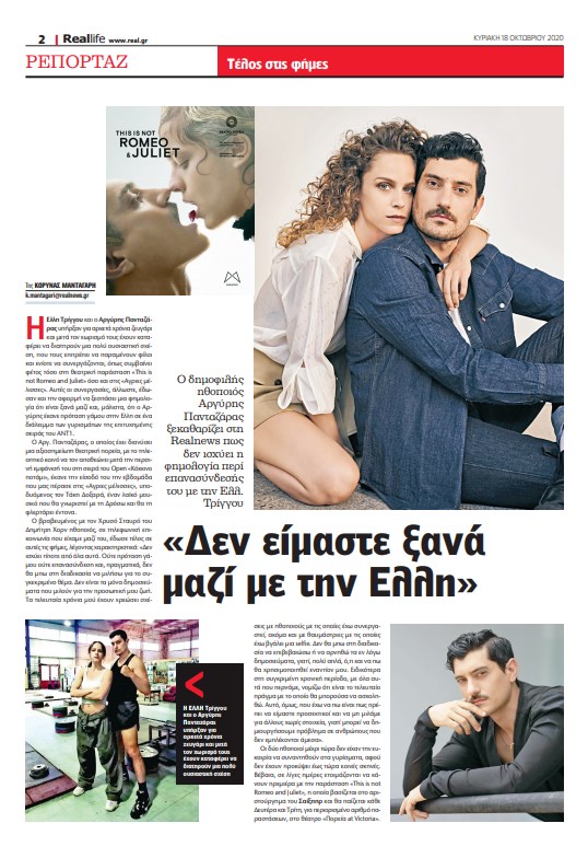 H Έλλη Τρίγγου και ο Αργύρης Πανταζάρας υπήρξαν για αρκετά χρόνια ζευγάρι και μετά τον χωρισμό τους έχουν καταφέρει να διατηρούν μια πολύ ουσιαστική σχέση, που τους επιτρέπει να παραμένουν φίλοι και ενίοτε να συνεργάζονται, όπως συμβαίνει φέτος τόσο στη θεατρική παράσταση «Τhis is not Romeo and Juliet» όσο και στις «Άγριες μέλισσες». Αυτές οι συνεργασίες, άλλωστε, έδωσαν και την αφορμή να ξεσπάσει μια φημολογία ότι είναι ξανά μαζί και, μάλιστα, ότι ο Αργύρης έκανε πρόταση γάμου στην Ελλη σε ένα διάλειμμα των γυρισμάτων της επιτυχημένης σειράς του ΑΝΤ1. Ο Αργ. Πανταζάρας, ο οποίος έχει διανύσει μια αξιοσημείωτη θεατρική πορεία, με το τηλεοπτικό κοινό να τον αποθεώνει μετά την περσινή εμφάνισή του στη σειρά του Open «Κόκκινο ποτάμι», έκανε την είσοδό του την εβδομάδα που μας πέρασε στις «Άγριες μέλισσες», υποδυόμενος τον Τάκη Δοξαρά, έναν λαϊκό μουσικό που θα γνωριστεί με τη Δρόσω και θα τη φλερτάρει έντονα. Ο βραβευμένος με τον Χρυσό Σταυρό του Δημήτρη Χορν ηθοποιός, σε τηλεφωνική επικοινωνία που είχαμε μαζί του, έδωσε τέλος σε αυτές τις φήμες, λέγοντας χαρακτηριστικά: «Δεν ισχύει τίποτε από όλα αυτά. Ούτε πρόταση γάμου ούτε επανασύνδεση και, πραγματικά, δεν θα μπω στη διαδικασία να μιλήσω για το συγκεκριμένο θέμα. Δεν είναι τα μόνα δημοσιεύματα που μιλούν για την προσωπική μου ζωή. Τα τελευταία χρόνια μού έχουν χρεώσει σχέσεις με ηθοποιούς με τις οποίες έχω συνεργαστεί, ακόμα και με θαυμάστριες με τις οποίες έχω βγάλει μια selfie. Δεν θα μπω στη διαδικασία να επιβεβαιώσω ή να αρνηθώ τα εν λόγω δημοσιεύματα, γιατί, πολύ απλά, ό,τι και να πω θα χρησιμοποιηθεί εναντίον μου. Ειδικότερα στη συγκριμένη χρονική περίοδο, με όλα αυτά που περνάμε, νομίζω ότι είναι το τελευταίο πράγμα με το οποίο θα μπορούσα να ασχοληθώ. Αυτό, όμως, που έχω να πω είναι πως πρέπει να είμαστε προσεκτικοί και να μη μιλάμε για άλλους χωρίς στοιχεία, γιατί μπορεί να δημιουργήσουμε πρόβλημα σε ανθρώπους που δεν εμπλέκονται άμεσα». Οι δύο ηθοποιοί μέχρι τώρα δεν είχαν την ευκαιρία να συναντηθούν στα γυρίσματα, αφού δεν έχουν προκύψει έως τώρα κοινές σκηνές. Βέβαια, σε λίγες ημέρες ετοιμάζονται να κάνουν πρεμιέρα με την παράσταση «Τhis is not Romeo and Juliet», η οποία βασίζεται στο αρΙστούργημα του Σαίξπηρ και θα παίζεται κάθε Δευτέρα και Τρίτη, για περιορισμένο αριθμό παραστάσεων, στο θέατρο «Πορεία at Victoria».
