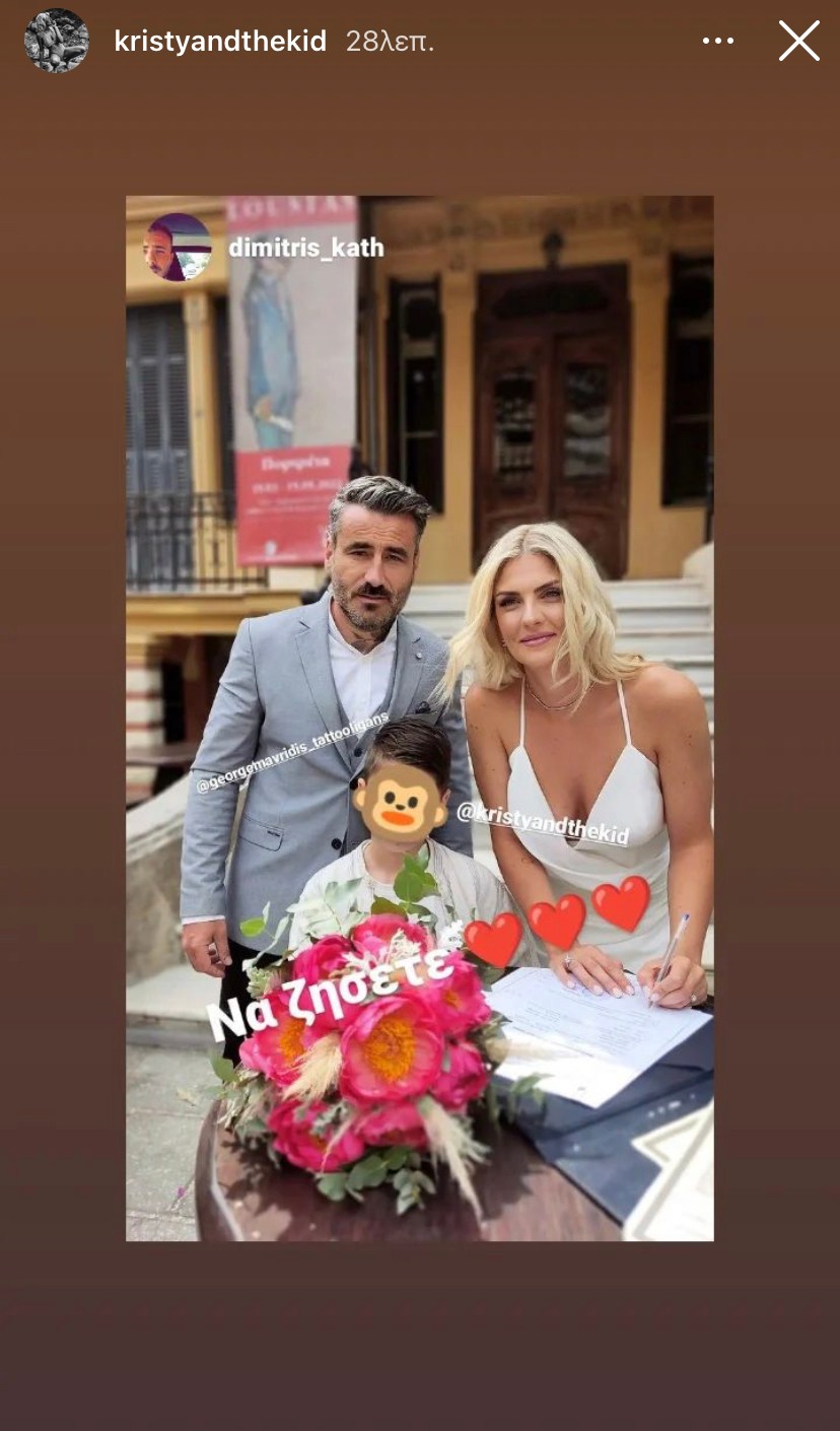 Μάλιστα, η όμορφη νύφη μοιράστηκε φωτογραφίες από την τελετή, στον προσωπικό της λογαριασμό στο Instagram. Συγκεκριμένα, αναδημοσίευσε τα στόρι που έκαναν οι αγαπημένοι τους άνθρωποι, οι οποίοι τους τίμησαν με την παρουσία τους την ξεχωριστή αυτή ημέρα.