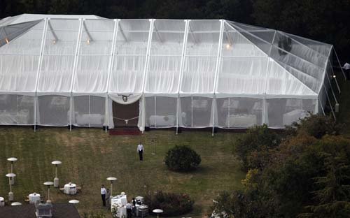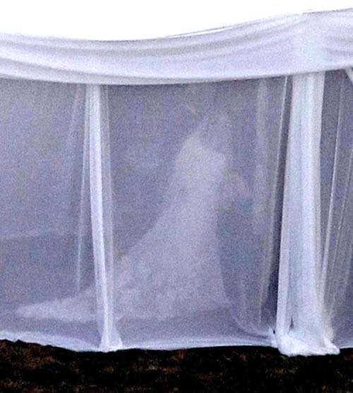 Στο απέραντο κτήμα της ηθοποιού είχε στηθεί μια κατασκευή, “ντυμένη” με λευκό διάφανο ύφασμα, που όμως, δεν άφηνε κανέναν να δει λεπτομέρειες…