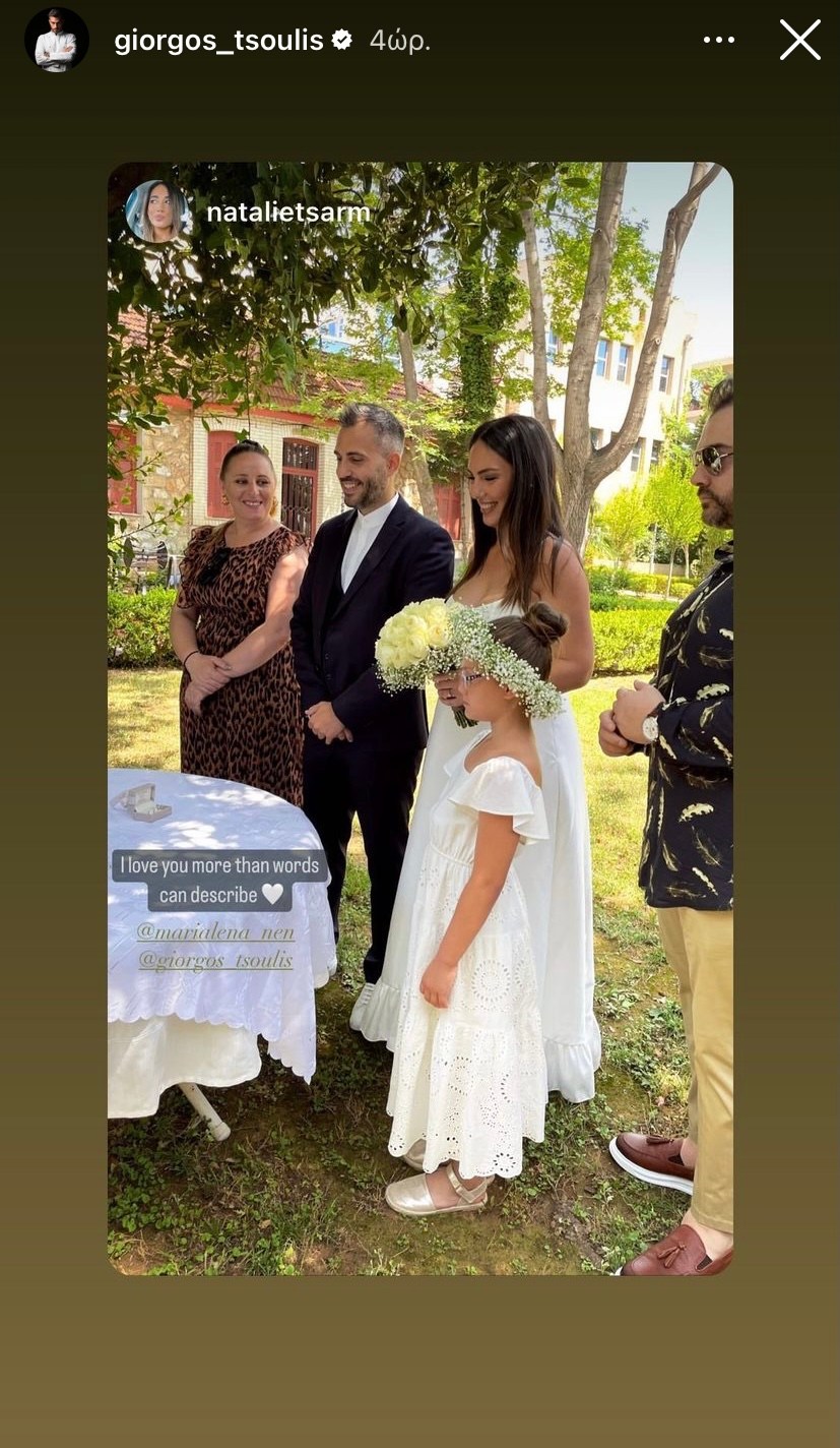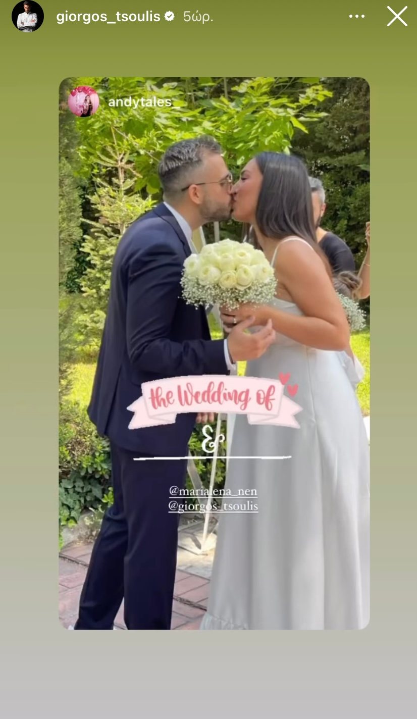 Μάλιστα, στον γάμο παρευρέθηκε και ο φίλος και συνεργάτης του Γιώργου Τσούλης, Νικόλας Ράπτης, ο οποίος δημοσίευσε φωτογραφία από την τελετή στον προσωπικό του λογαριασμό στο Instagram.