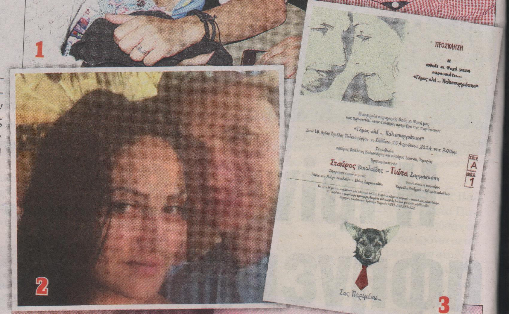 Το Σάββατο 16 Αυγούστου ο Στάυρος Νικολαΐδης και η αγαπημένη του (αισθητικός στο επάγγελμα) Γιώτα Ζαρμακούπη θα περάσουν χέρι χέρι το κατώφλι του Ιερού Ναού Αγίας Τριάδας Παλαιοπύργου στην ορεινή Ναυπακτία προκειμένου να επισημοποιήσουν τη σχέη τους, που μετράει ήδη τεσσεράμισι χρόνια.