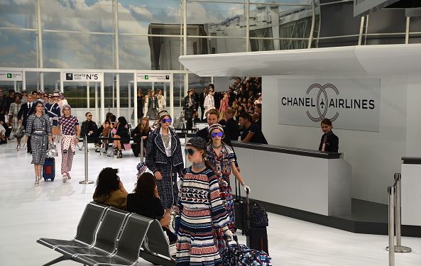 Στην Εβδομάδα Μόδας του Παρισιού ο εμβληματικός οίκος μόδας επανακαθόρισε το «travel chic» παρουσιάζοντας και custom-made αποσκευές Chanel. Το «ψεύτικο» αεροδρόμιο ονομάστηκε «Aeroport Paris Cambon» και η πρώτη επιβάτης της πτήσης «Chanel Airlines» ήταν το μοντέλο Έντι Κάμπελ.
