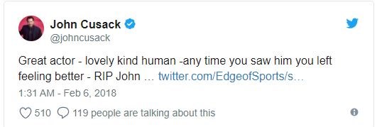 Ο δημοφιλής ηθοποιός, άφησε την τελευταία του πνοή σε νοσοκομείο του Σικάγο την Κυριακή, ενώ η αιτία θανάτου του δεν έχει μέχρι στιγμής ανακοινωθεί.