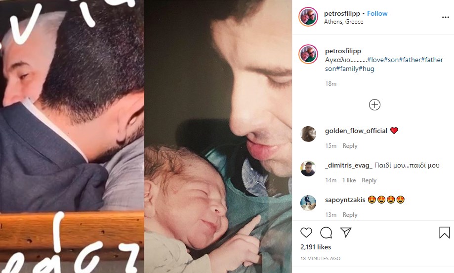 Ο Πέτρος Φιλιππίδης έκανε μια ανάρτηση στον λογαριασμό του στο instagram αφιερωμένη στον αγαπημένο του γιο. Ο γνωστός ηθοποιός είχε κάνει κολάζ δύο φωτογραφίες, μία από το παρελθόν και μια πιο πρόσφατη, όπου και στις δύο έχει αγκαλιά τον γιο του, σαν μωρό και όταν πλέον έχει μεγαλώσει. Η λεζάντα γράφει “αγκαλιά #love #son #father #family #hug”. Ο ηθοποιός διατηρεί άριστη σχέση με τον γιο του, ο οποίος άλλωστε είναι φτυστός ο πατέρας του. Στις 10 Αυγούστου του 1997 ήρθε στη ζωή ο Δημήτρης.