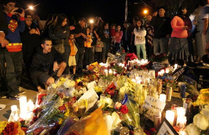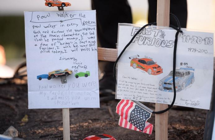 Τη θέση της Porsche Carrera GT στην οποία επέβαινε ο Πολ Γουόκερ, έχουν πάρει δεκάδες χαρτιά με μηνύματα, λουλούδια και κεριά. Απλός κόσμος αποχαιρετά τον ηθοποιό, αδυνατώντας να συγκρατήσει τα δάκρυά του.