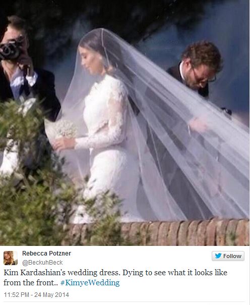 Η Κιμ Καρντάσιαν επιτέλους παντρεύτηκε με τον αγαπημένο της Kanye West στην Φλωρεντία. Η τελετή έγινε πριν λίγες ώρες και στη φωτογραφία που ακολουθεί μπορείτε να δείτε την Καρντάσιαν ντυμένη νυφούλα.
