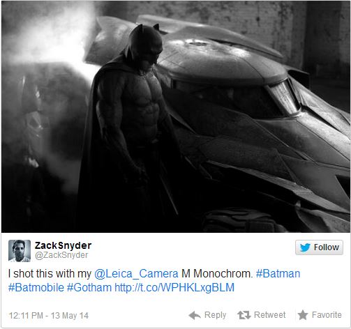 Ο σκηνοθέτης της νέας ταινίας του Μπάτμαν, Ζακ Σνάιντερ, ανέβασε στον προσωπικό του λογαριασμό στο Twitter μία φωτογραφία του Batmobile με τη φιγούρα του Μπάτμαν και όλοι οι κινηματογραφόφιλοι αναρωτιόντουσαν αν αυτός που εμφανίζεται δίπλα στο αυτοκίνητο του σούπερ ήρωα είναι πραγματικά ο ίδιος ο Μπεν Άφλεκ.