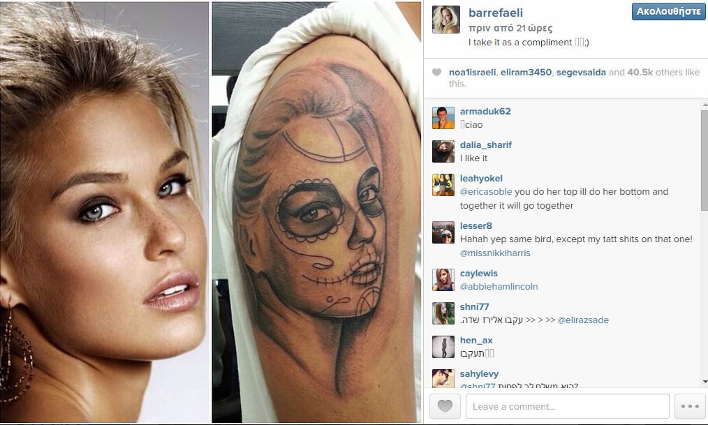 Το τατουάζ που έκανε ένας θαυμαστής της στο μπράτσο του «ανέβασε» στην προσωπική της σελίδα στο Instagram το μοντέλο Μπάρ Ραφαέλι.