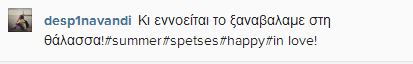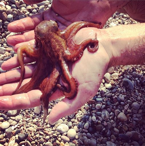 Η Δέσποινα Βανδή και η οικογένειά της, βρίσκονται στις Σπέτσες. Εκεί, παίζοντας στη θάλασσα, έπιασαν ένα μικρό χταπόδι.