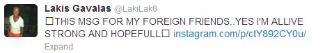 Ο Λάκης Γαβαλάς “χτύπησε” και πάλι μέσω twitter, στέλνοντας ένα μήνυμα γεμάτο νόημα στους φίλους του στο εξωτερικό…
