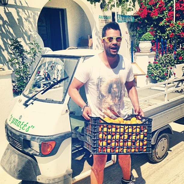 Πρόκειται για τον Γιώργο Τσαλίκη ο οποίος απολαμβάνει τις διακοπές του μαζί με την οικογένειά του στην όμορφη Νάξο! Ο γνωστός τραγουδιστής μοιράστηκε με τους διαδικτυακούς του φίλους μία φωτογραφία που απεικονίζει τον ίδιο σε ρόλο delivery να μεταφέρει πορτοκάλια! Μάλιστα, έγραψε χαρακτηριστικά στη λεζάντα της φωτογραφίας: «Ελα φρέσκα πορτοκάλιαααα.. Ήρθε ο μπαξέεεες»!