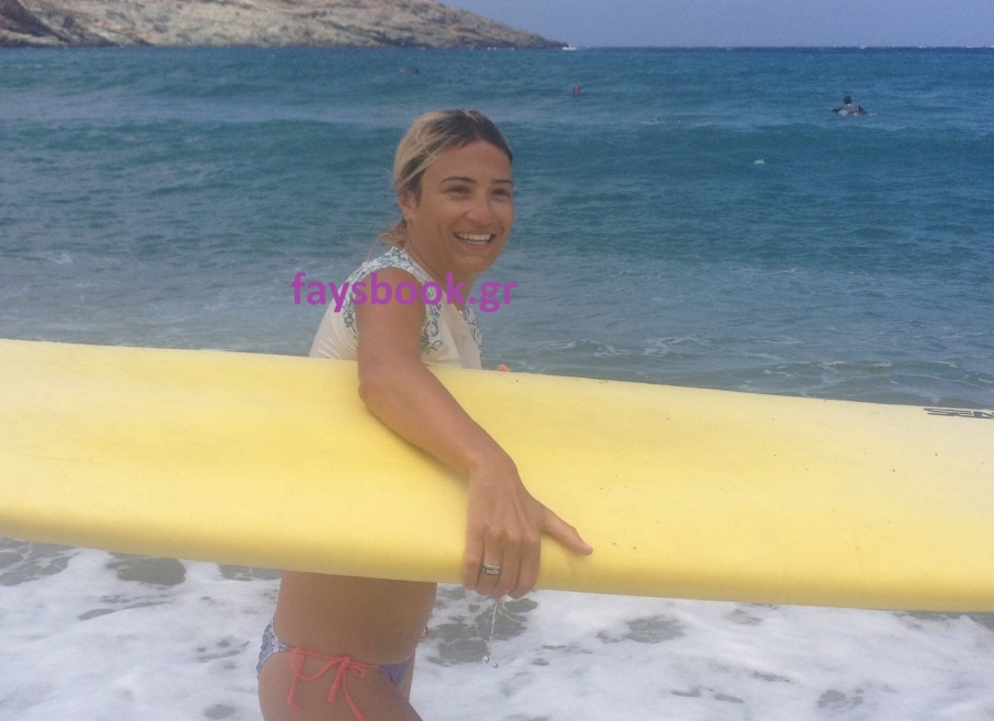 Η Φαίη Σκορδά μαθαίνει σερφ ανεβάζοντας μία φωτογραφία της στην προσωπική της σελίδα “Fay Tales” στο faysbook.gr.