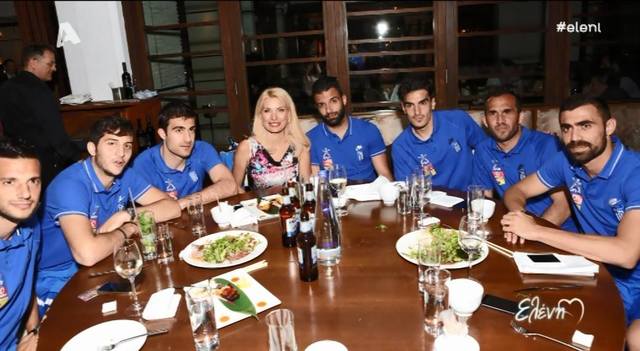 Η παρουσιάστρια συνάντησε εντελώς τυχαία τον προπονητή της εθνικής ομάδας Φερνάντο Σάντος και τους αθλητές σε γνωστό εστιατόριο των νοτίων προαστίων, όπου φωτογραφήθηκε μαζί τους.
