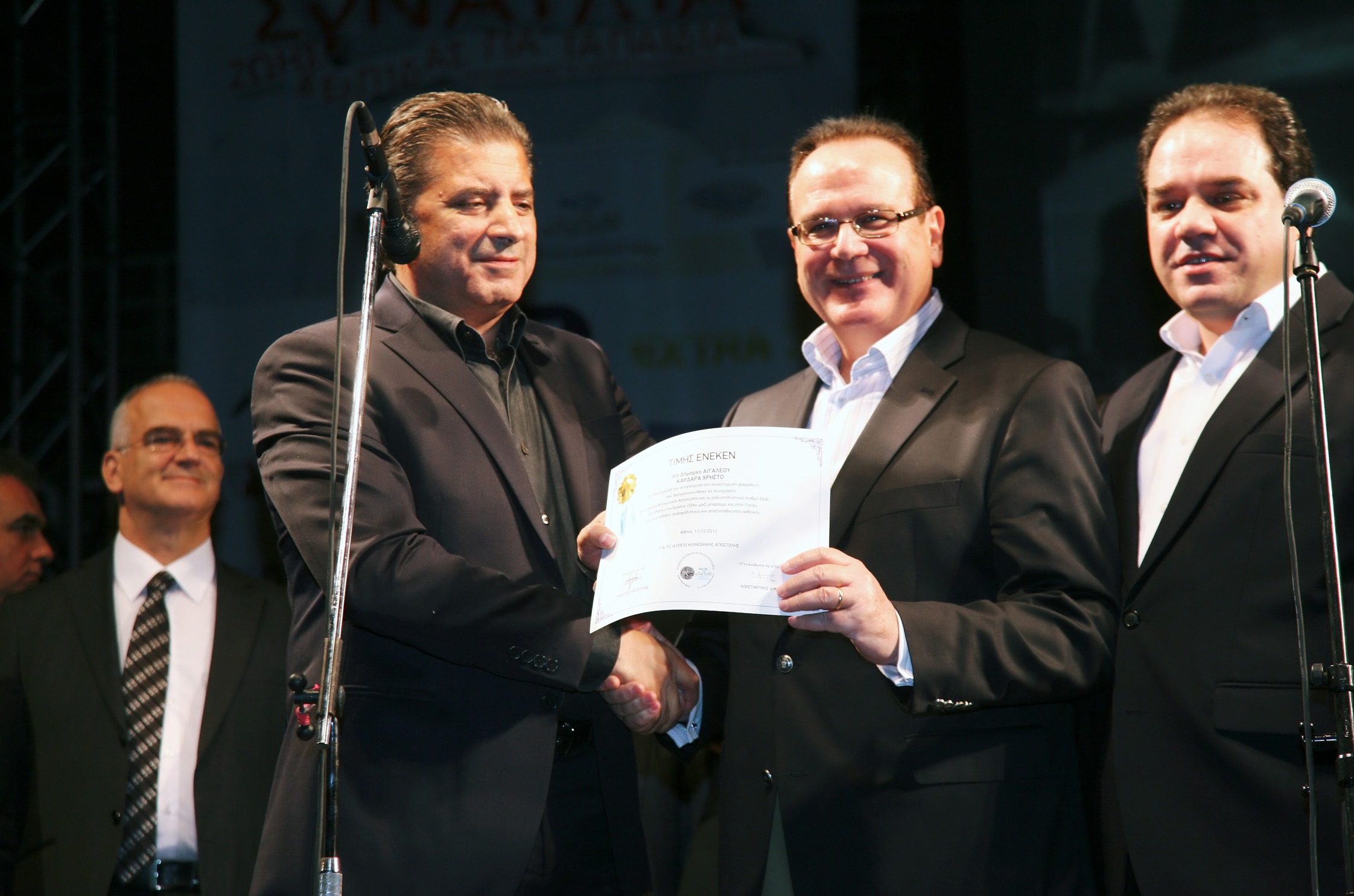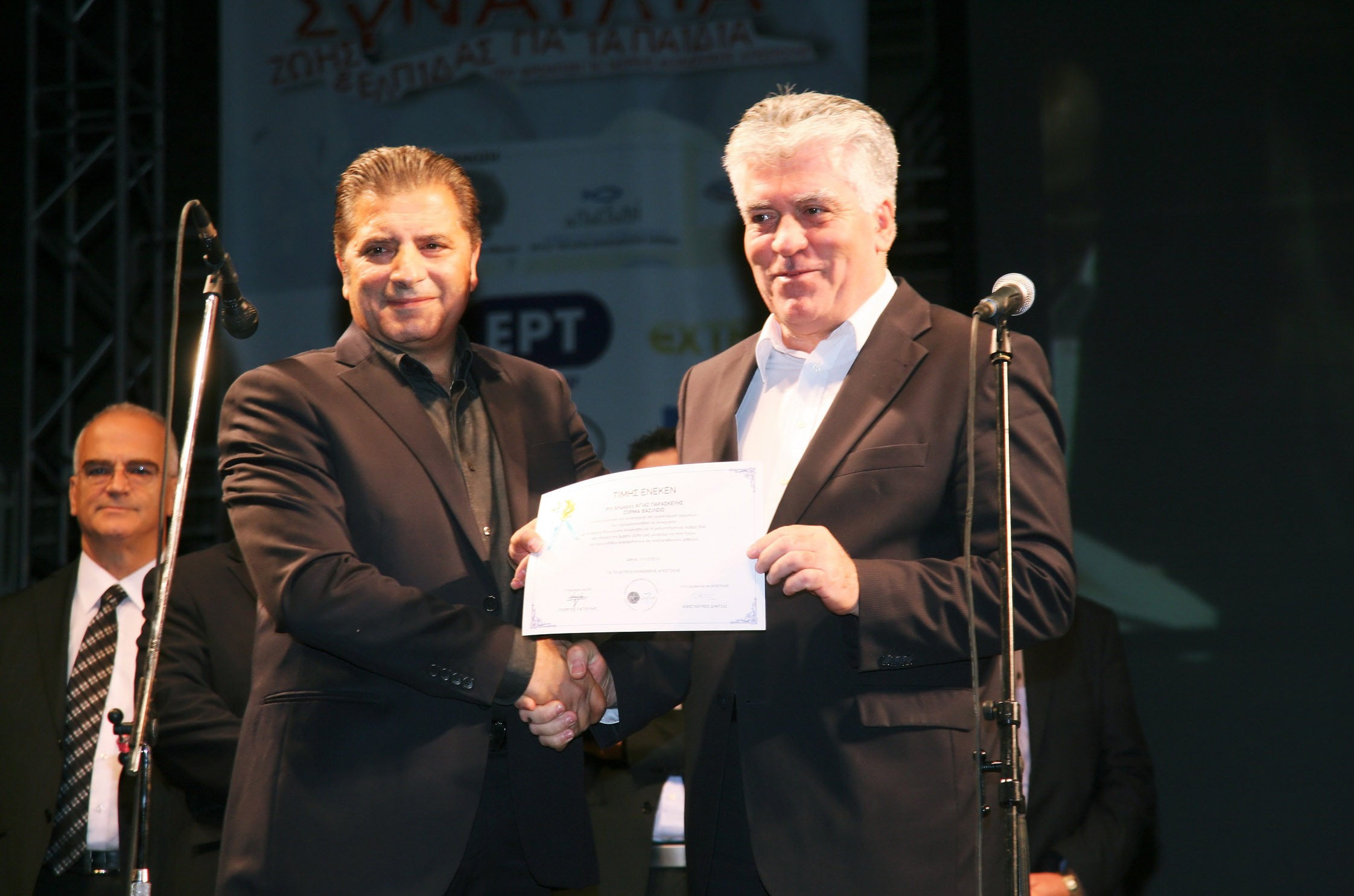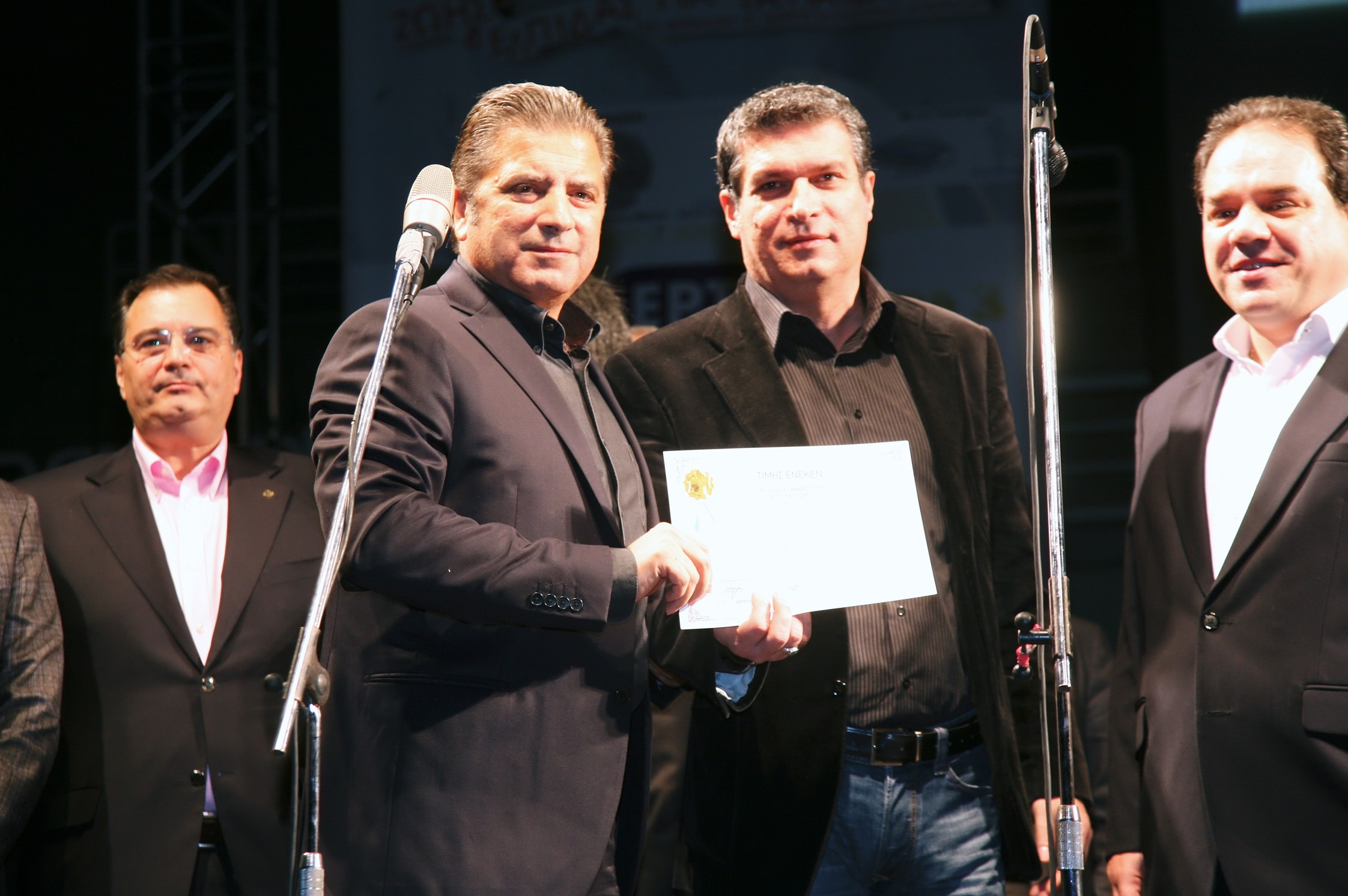 O Πρόεδρος του Ι.Σ.Α και Δήμαρχος Αμαρουσίου Γ. Πατούλης, παραδίδει τον έπαινο στον αναπληρωτή Δημάρχου και Αντιδήμαρχο Αμαρουσίου Ν. Πέππα, για λογαριασμό του Δήμου Αμαρουσίου.