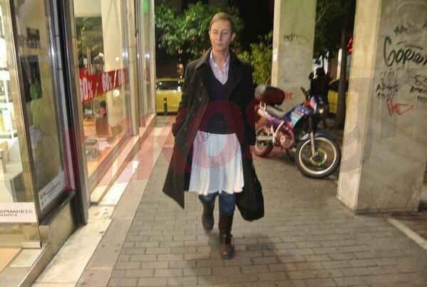 Ο σχεδιαστής Βασίλειος Κωστέτσος φόρεσε το τζιν του, τις μπότες του και έριξε από πάνω και μια λευκή φούστα, που μοιάζει με… φουστανέλα και ξεκίνησε να περπατάει στους δρόμους του Κολωνακίου.