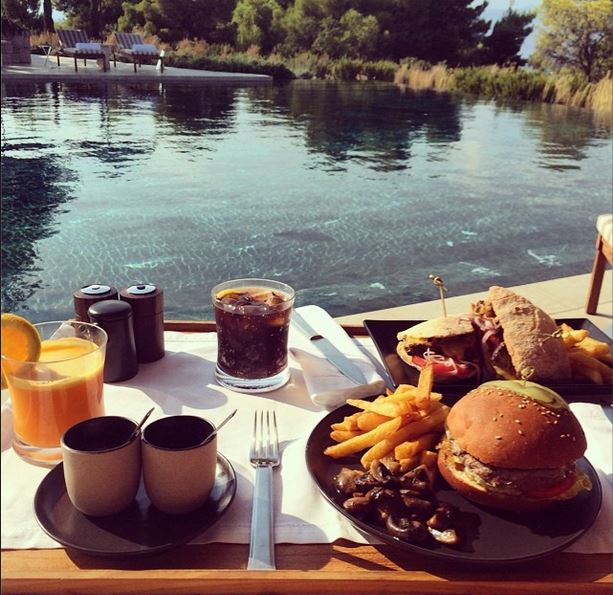 Νωρίτερα το μοντέλο ανέβασε φωτογραφία με το γεύμα με τα μπέργκερ δίπλα στην πισίνα…