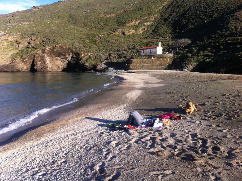 H Ελένη Μενεγάκη ανέβασε πριν από λίγο στο twitter μία φωτογραφία της, όπου ξαπλώνει στην αμμουδιά μιας παραλίας της Άνδρου.