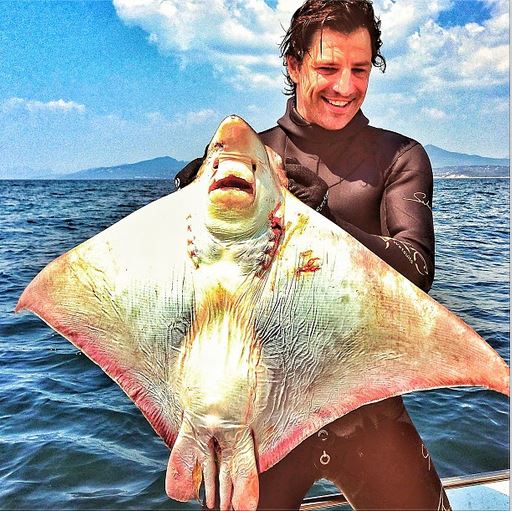Ο Σάκης Ρουβάς έκανε την πρώτη βουτιά του καλοκαιριού και έπιασε ένα σαλάχι, με το οποίο και φωτογραφήθηκε.