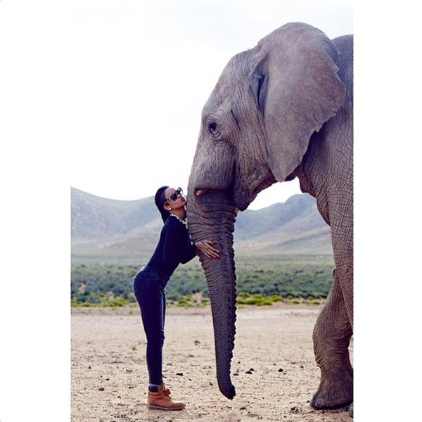 Στη Νότια Αφρική βρίσκεται η Rihanna. Η σέξι τραγουδίστρια ανέβασε μία φωτογραφία στο instagram από τη συνάντησή της με έναν… ελέφαντα.