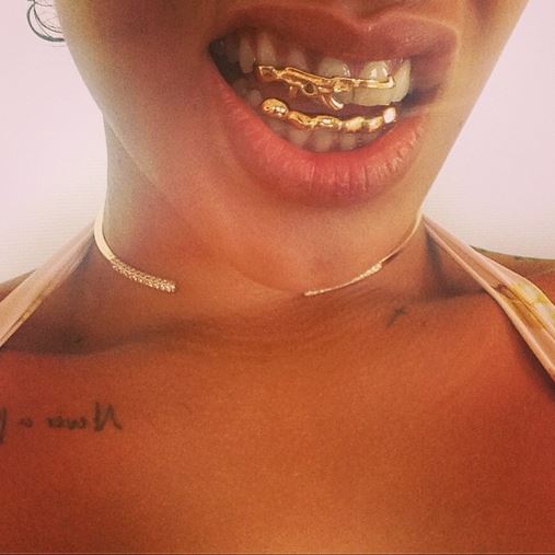 Αυτή δεν είναι η πρώτη φορά, που η Rihanna ποζάρει με χρυσό μασελάκι. Στην ίδια μόδα έχει υποκύψει και η βασίλισσα της pop Madonna αλλά και ο Justin Bieber.