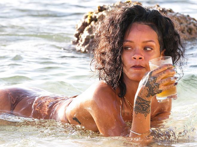 Είναι σέξι και φροντίζει να μας το δείχνει συχνά. Αυτή τη φορά η Ριάνα ποζάρει στην παραλία με το μαγιό της, χωρίς ίχνος μακιγιάζ και κρατώντας ένα ποτό.