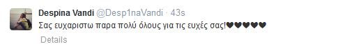 Η κόρη της Δέσποινας Βανδή και του Ντέμη Νικολαΐδη, Μελίνα, έγινε 9 χρονών και η διάσημη τραγουδίστρια δεν έκρυψε την χαρά της, ανεβάζοντας φωτογραφία στο Instagram, την τούρτα γενεθλίων της κόρης της. Την ίδια στιγμή, μέσω του προσωπικού της λογαριασμού στο Twitter, ευχαρίστησε όσους της ευχήθηκαν για τα γενέθλια της μικρής Μελίνας.