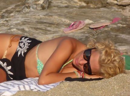 Αυτή τη φορά φωτογραφίζεται όχι μόνο στην παραλία αλλά και μέσα στη θάλασσα.