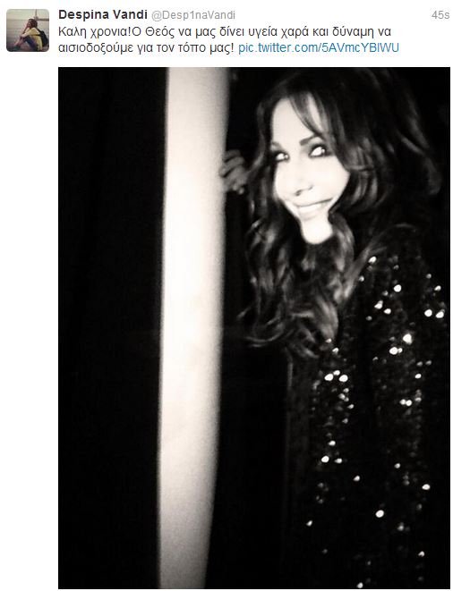Η Δέσποινα Βανδή στέλνει τις ευχές της για το νέο έτος μέσω twitter.
