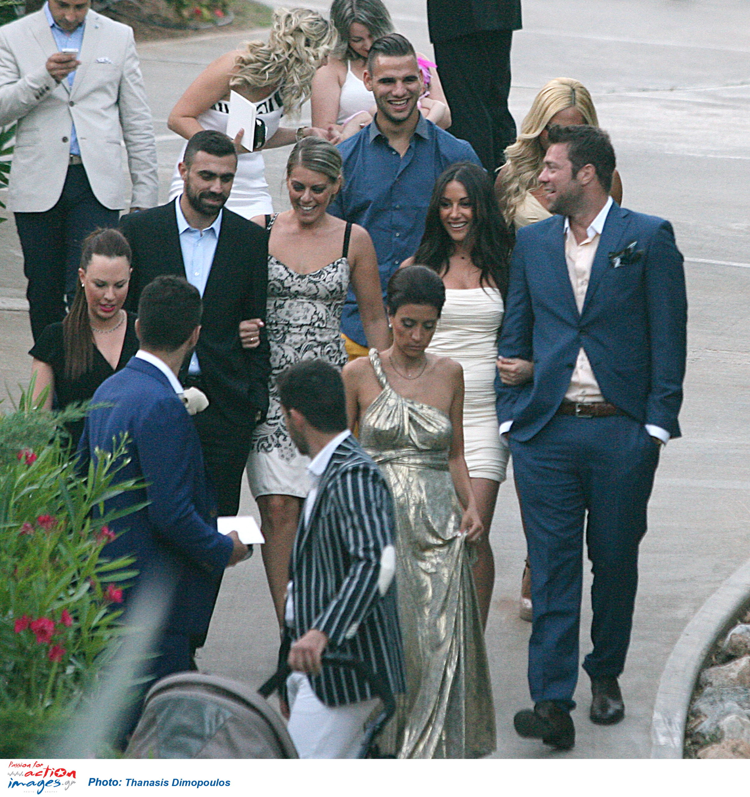 Ανάμεσα στους καλεσμένους ήταν πολλοί πρώην συμπαίκτες του γαμπρού από την ΑΕΚ, οι Έλληνες διεθνείς από το Μουντιάλ, παράγοντες του ποδοσφαίρου, αλλά και ο Χρήστος Χολίδης συνοδευόμενος από τη Χριστίνα Μουστάκα.