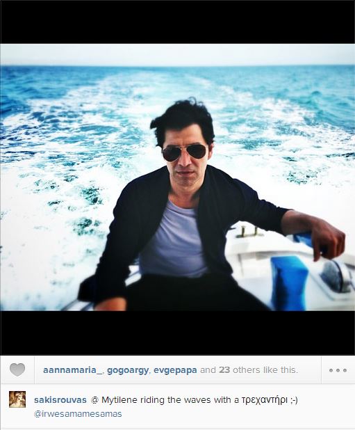 Ο τραγουδιστής ανέβασε μία φωτογραφία στο Instagram σχολιάζοντας: “Δαμάζοντας τα κύματα της Μυτιλήνης με τρεχαντήρι”.