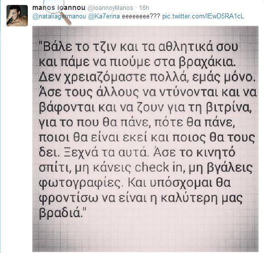 Ο Μάνος Ιωάννου ανέβασε στο twitter τις παρακάτω φωτογραφίες κάνοντας mention τη συντροφό του, Ναταλία Γερμανού και μία φίλη της.