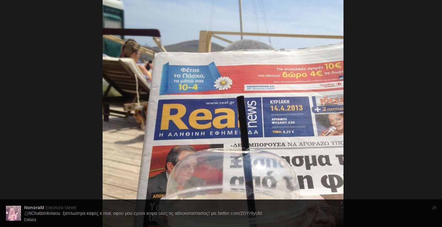 Ο λόγος για την Ελεονόρα Μελέτη, η οποία… μελετά την Real News παρέα με καφέ στην ξαπλώστρα, αφού όπως λέει η ίδια, λόγω του προβλήματος που αντιμετωπίζει με την μέση της, δεν μπορεί να επιδοθεί στα αγαπημένα της σπορ.