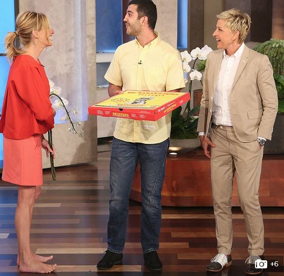Η Έλεν ντε Τζένερις επεφύλασσε μία έκπληξη στην ηθοποιό καθώς στο πλατό της εκπομπής εμφανίστηκε ο νεαρός μοίρασε πίτσες στους celebrities την βραδιά των Όσκαρ.