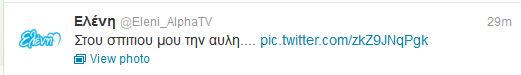 ΦΩΤΟ-Στην αυλή της Μενεγάκη Enikos Newsroom 15:35, Πέμπτη 25 Απριλίου 2013 lifestyle ΦΩΤΟ-Στην αυλή της Μενεγάκη Η Ελένη Μενεγάκη ανέβασε μία φωτογραφία στο twitter από την αυλή του σπιτιού της. TWITTER ΕΛΕΝΗ ΜΕΝΕΓΑΚΗ ΦΩΤΟΓΡΑΦΙΑ Μοιράσου το: σχολίασε κι εσύ (0 σχόλια) Ακολουθήστε το enikos.gr στο Google News και μάθετε πρώτοι όλες τις ειδήσεις Δείτε όλες τις τελευταίες ειδήσεις από την Ελλάδα και τον Κόσμο στο enikos.gr Ειδήσεις Ροή Ειδήσεων 40 λεπτά πριν Πώς δρούσε το κύκλωμα που διακινούσε ναρκωτικά σε σχολεία – Υπέβαλαν σε βασανιστήρια όσους δεν τηρούσαν τους «κανόνες πειθαρχίας» 1 ώρα πριν Αγρότες: Γιορτές στα μπλόκα με ανοιχτά διόδια – Δικογραφία στα Ιωάννινα για το σήκωμα των μπαρών 5 ώρες πριν Αρχεία Έπσταϊν: Οι συγκλονιστικές φωτογραφίες – Ο Μάικλ Τζάκσον, ο Μικ Τζάγκερ και ο Κέβιν Σπέισι ανάμεσα στους διάσημους που απεικονίζονται 3 ώρες πριν Βέλγιο: Άγνωστοι έριξαν κόκκινη μπογιά στο προξενείο της Πολωνίας στις Βρυξέλλες 2 ώρες πριν ΕΛΑΣ: Συνελήφθησαν Υπαρχιπυροσβέστης και δύο ακόμη άτομα για κατοχή και διακίνηση ναρκωτικών ουσιών – Η καταγγελία και ο τιμοκατάλογος 1 ώρα πριν Η τύχη χαμογελά σε 3 ζώδια έως τις 28 Δεκεμβρίου – «Προσέξτε τις επιλογές σας και η επιμονή σας θα ανταμειφθεί» 5 ώρες πριν Διαιτολόγος αποκαλύπτει 9 πρωινές συνήθειες που «λιώνουν» το κοιλιακό λίπος – «Υποστηρίζουν την υγιεινή απώλεια βάρους» 6 ώρες πριν Οι 7 φράσεις που δεν λένε ποτέ οι συναισθηματικά έξυπνοι άνθρωποι κατά τη διάρκεια ενός καβγά 8 ώρες πριν Enerwave: Το νέο «ρεύμα» στη λιανική ενέργειας που αλλάζει την εμπειρία του καταναλωτή 9 λεπτά πριν Κωνσταντίνος Αργυρός: «Δεν θέλω να ασχοληθώ με την πολιτική σε αυτή τη φάση – Μου έχουν γίνει προτάσεις» 18 λεπτά πριν Σέρρες: Διέρρηξαν διαμέρισμα και «βούτηξαν» ρολόγια συνολικής αξίας 15.000 ευρώ – 3 συλλήψεις 25 λεπτά πριν Κουίζ για την παλιά Αθήνα: Αναγνωρίζετε την συνοικία; Είναι από τις πιο γνωστές 34 λεπτά πριν Ζελένσκι: Οι Αμερικανοί πρότειναν συνάντηση Ουκρανίας, ΗΠΑ, Ρωσίας στο Μαϊάμι 40 λεπτά πριν Πώς δρούσε το κύκλωμα που διακινούσε ναρκωτικά σε σχολεία – Υπέβαλαν σε βασανιστήρια όσους δεν τηρούσαν τους «κανόνες πειθαρχίας» ENIKOS NETWORK Η αποχή από την αναπαραγωγή παρατείνει τη ζωή στα ζώα, σύμφωνα με μελέτη – Τι ισχύει για τους ανθρώπους; Σημαντικές επαφές στις ΗΠΑ είχε ο υπουργός Υγείας Άδωνις Γεωργιάδης Στα ύψη ο χρυσός – Νέο ρεκόρ στην τιμή της λίρας, πόσο πωλείται Τέλη κυκλοφορίας 2026: Προσοχή στην προθεσμία εξόφλησής τους – Πώς διαμορφώνονται τα πρόστιμα σε περίπτωση καθυστέρησης Χαρτογραφώντας το «σημείο χωρίς επιστροφή»: Για πρώτη φορά αποκαλύπτεται με λεπτομέρεια το ακανθώδες όριο της ατμόσφαιρας τ... Η Google καταργεί τη λειτουργία «dark web report» – Πώς θα μπορούν οι χρήστες να διαγράφουν τα δεδομένα τους περισσότερα 15:55 , Σάββατο 20 Δεκεμβρίου 2025 Στο νοσοκομείο ο Λευτέρης Πανταζής – Τι συνέβη Στο νοσοκομείο νοσηλεύεται ο Λευτέρης Πανταζής, καθώς, όπως αποκάλυψε ο ίδιος, κατέρρευσε από ... 08:53 , Σάββατο 20 Δεκεμβρίου 2025 Γιώργος Μαζωνάκης: Τη Δευτέρα η μήνυση του τραγουδιστή κατά του 22χρονου Τη Δευτέρα θα καταθέσει μήνυση ο Γιώργος Μαζωνάκης κατά του 22χρονου, Στέφανου Παπαδόπουλου, ο... 08:45 , Σάββατο 20 Δεκεμβρίου 2025 Αμαλία Κωστοπούλου: Το μήνυμα για το χειρουργείο στο γόνατο – «Αυτός ο τραυματισμός μού στέρησε πολλά…» Ένα πολύ προσωπικό μήνυμα μοιράστηκε η Αμαλία Κωστοπούλου μέσα από τον λογαριασμό της στο Inst... 03:20 , Σάββατο 20 Δεκεμβρίου 2025 