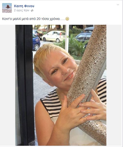 “Κοντό μαλλί μετά από 20 χρόνια” σχολίασε η ηθοποιός στο facebook ποστάροντας την παρακάτω φωτογραφία.