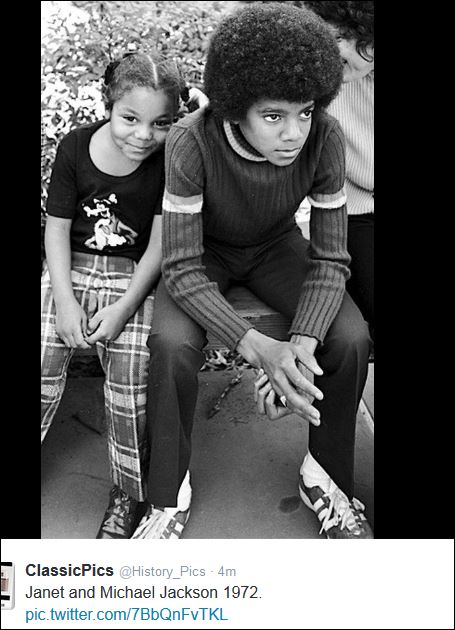 Τα δύο παιδιά της φωτογραφίας ήταν αδέρφια. Ο μικρός με το μαλλί-αφάνα είναι ο “Βασιλιάς της Ποπ”, ο Μάικλ Τζάκσον σε ηλικία 14 ετών. Το κοριτσάκι που ακουμπάει πάνω του είναι η αδερφή του Τζάνετ σε ηλικία 6 ετών.